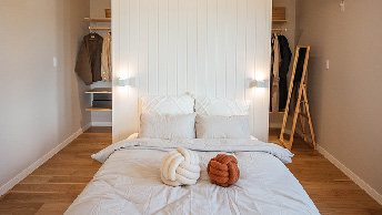 2階主寝室には、半戸外的なインナーバルコニーを配し、ほどよく日差しを避けながらアウトドア感覚をお楽しみいただけるなど、日々の暮らしを豊かに彩る工夫を随所に取り入れました。